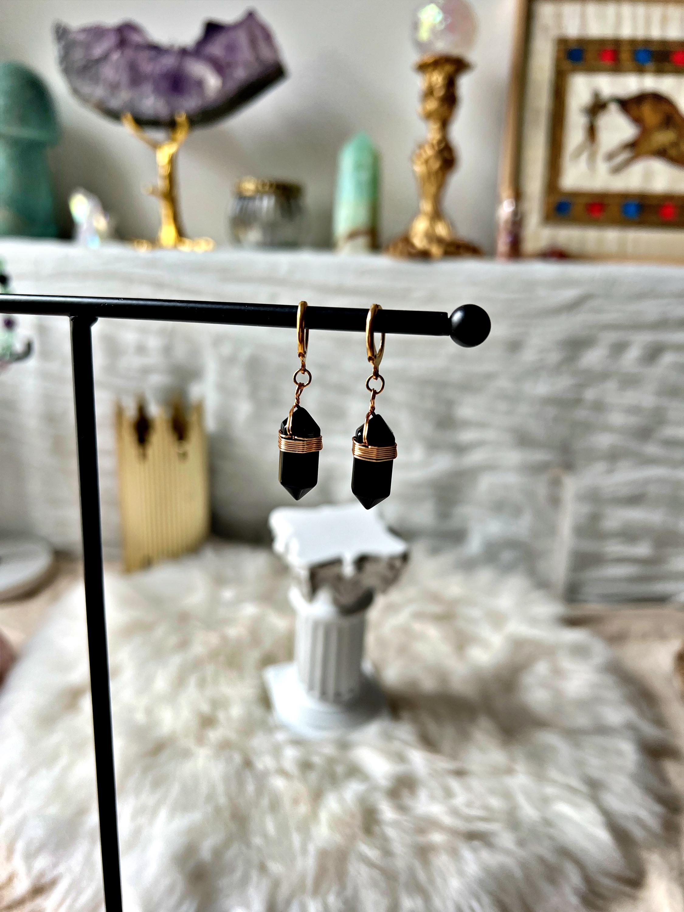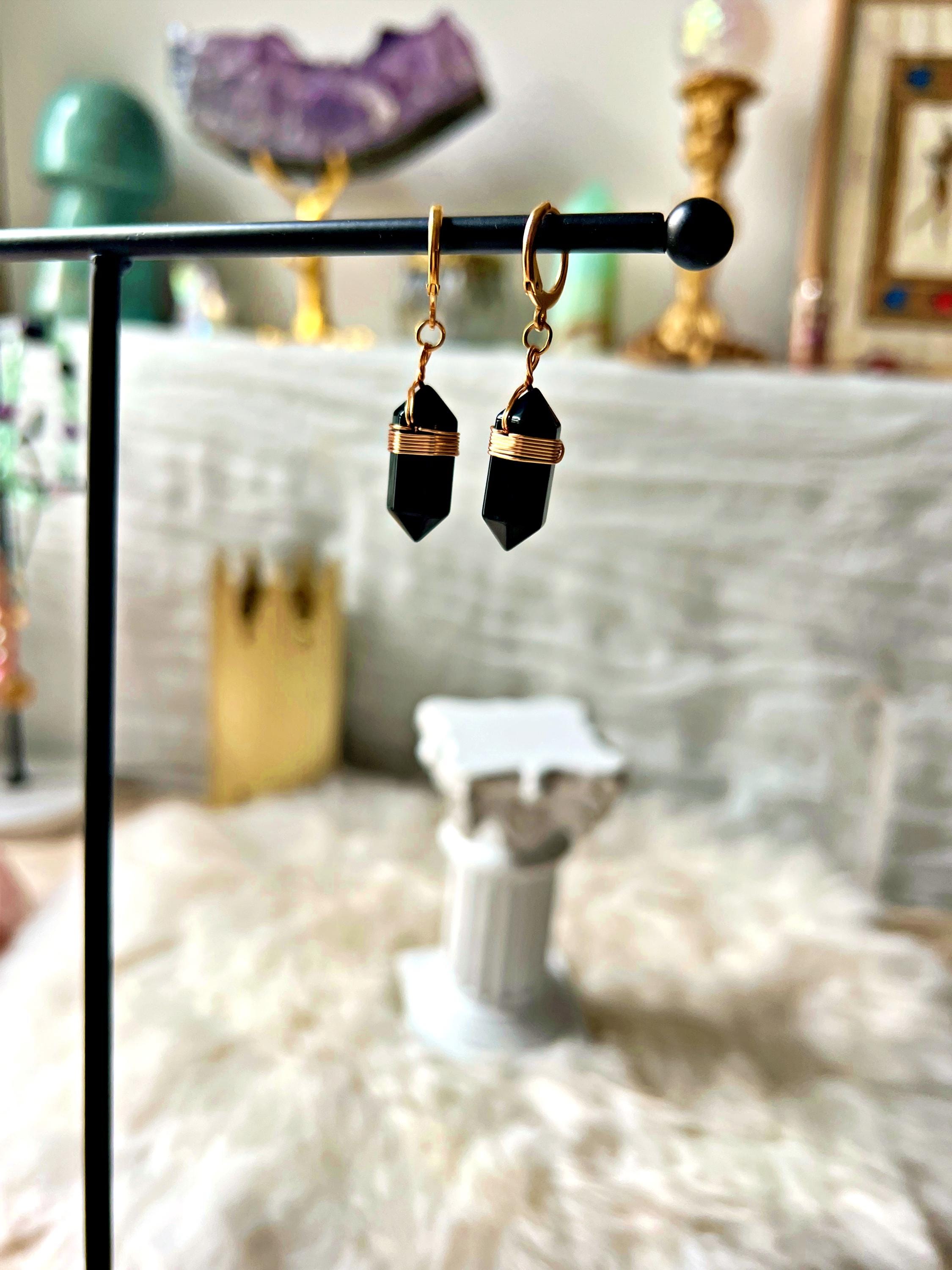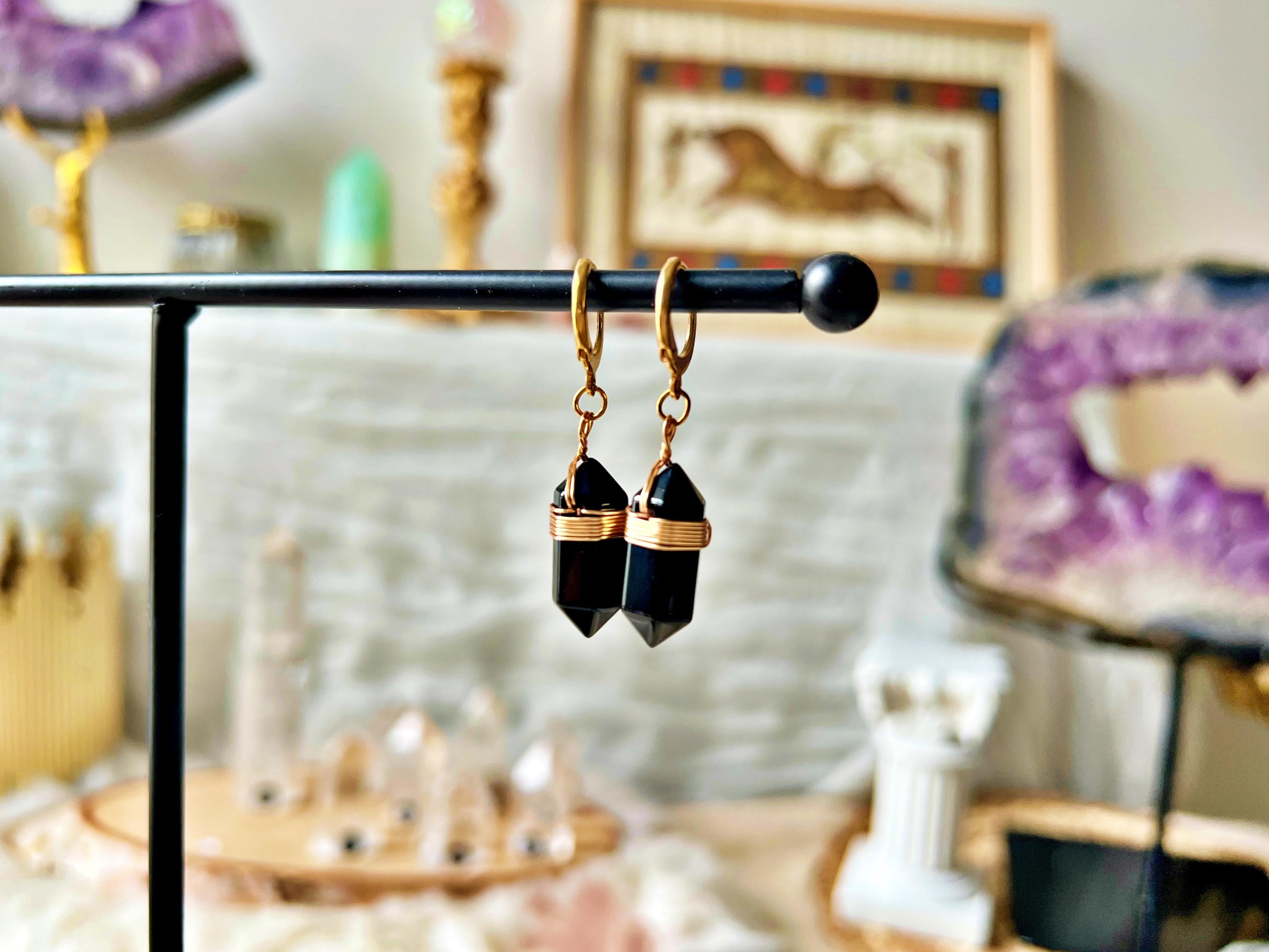 Born from fire and frozen in an instant, these Black Obsidian earrings capture the meeting between molten lava and air.