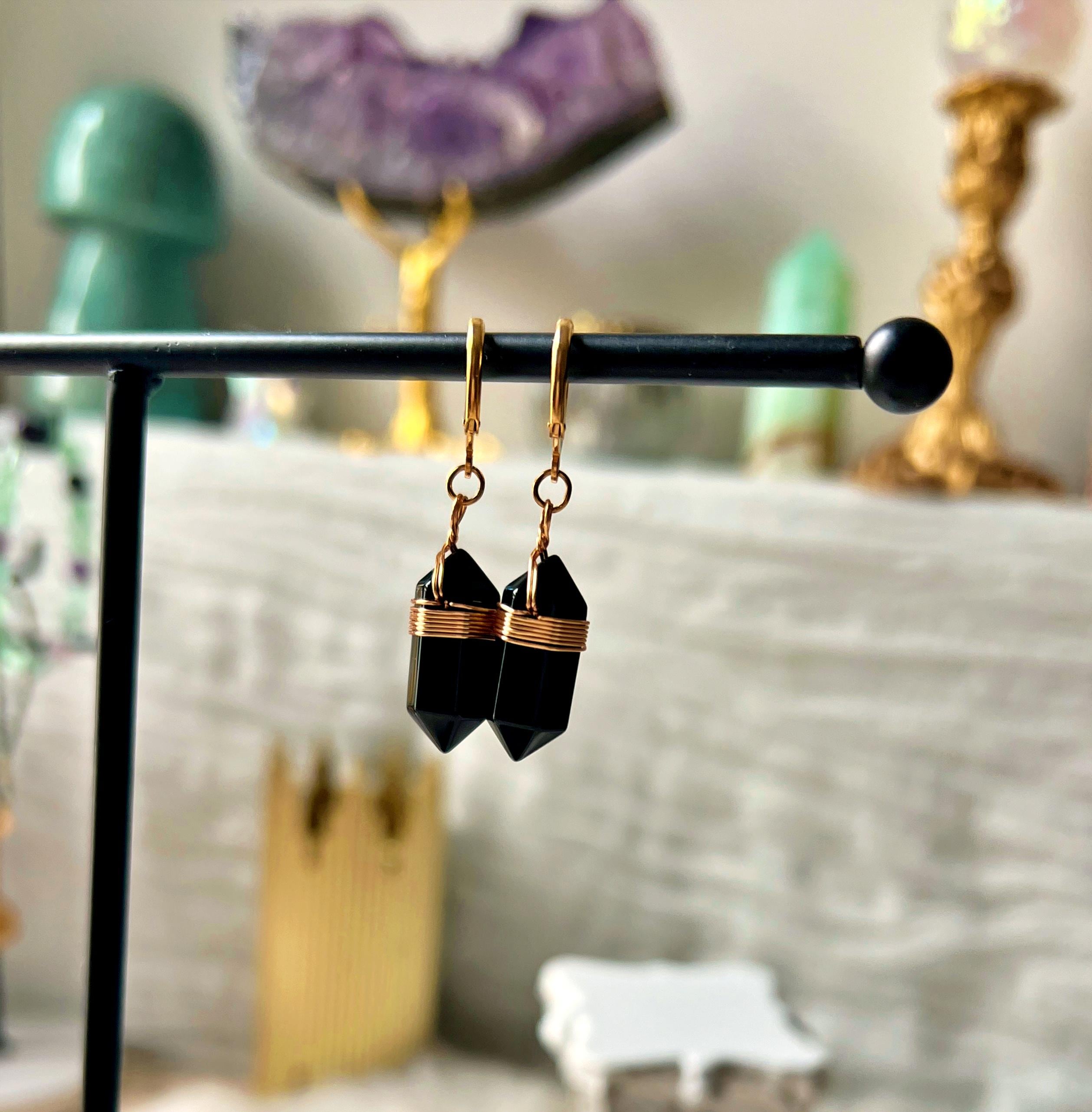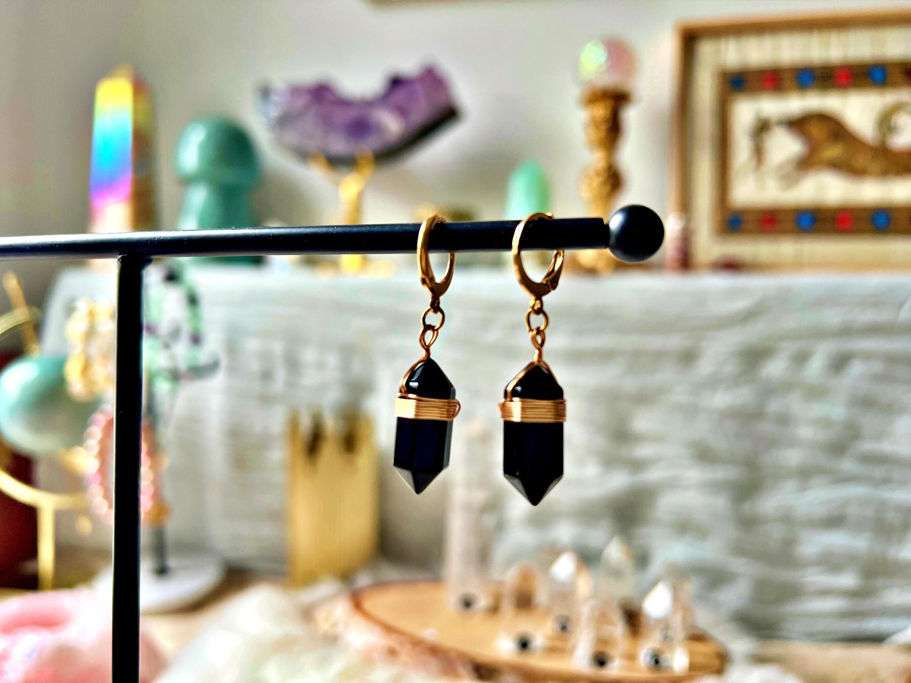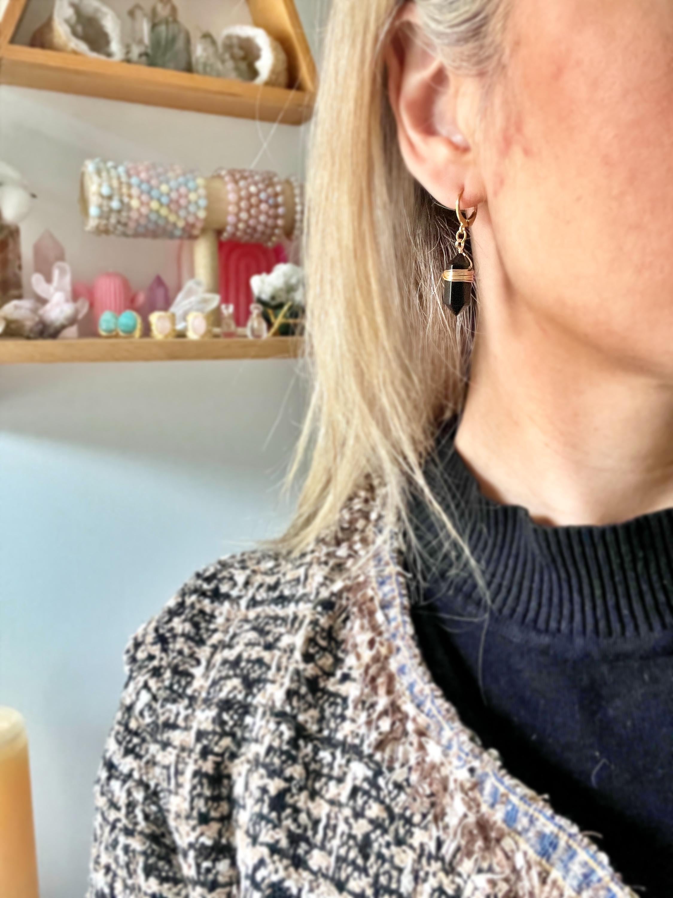 Born from fire and frozen in an instant, these Black Obsidian earrings capture the meeting between molten lava and air.