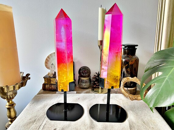 Pointes de Cristal de Roche Double Aura (Rose & Orange)