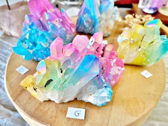 Pointe de Cristal de Roche Aura Solaire (Jaune) pour Lithothérapie et Reiki, Chakras